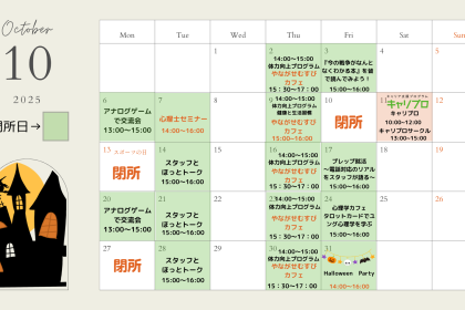 また、金曜日の15時から16時は日替わりメニューでちょっと楽しい時間になるような交流プログラムを予定しています。